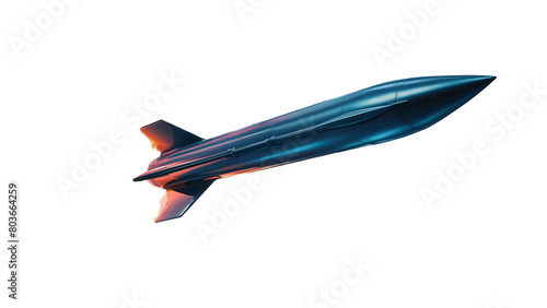 Futuristic Metallic Blue Rocket Isolated on Black Background, Elegantly Reflecting Light, PNG Transparent Background