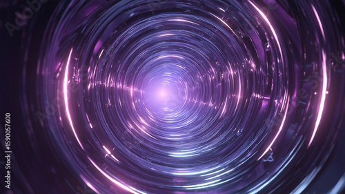 Futuristic Metallic Spiral Tunnel with Glowing Neon Light Highlights