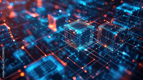 Futuristic metaverse digital cubes blocks technology network connection concept