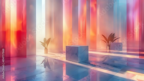 Futuristic Minimalist Cube and Colorful Ribbon Abstract Composition