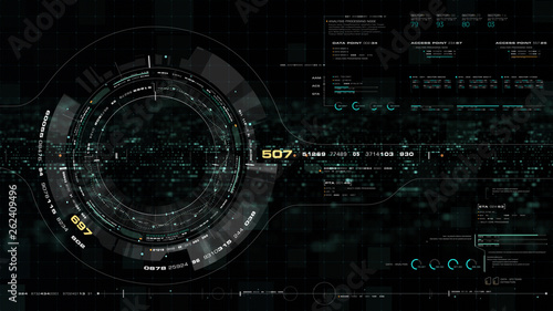 Futuristic motion graphic user interface head up display screen with Holographic Earth and digital data telemetry information display for digital background computer desktop display screen