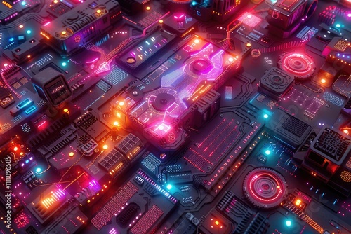 Futuristic Neon Circuit Board Technology Design