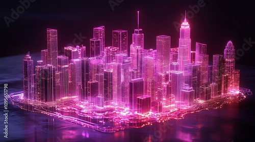 Futuristic neon cityscape glowing in pink light.