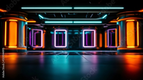 Futuristic Neon Corridor Sci Fi Innovation Hub Glow