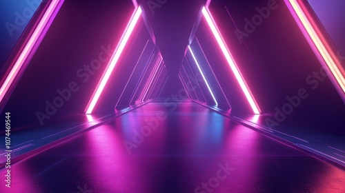 Futuristic Neon Corridor with Pink and Blue Lights