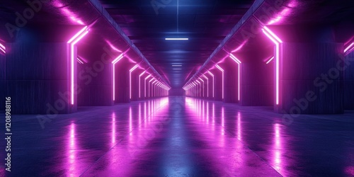 Futuristic Neon Cyberpunk Nightclub Interior with Geometric Patterns and High Contrast Lighting