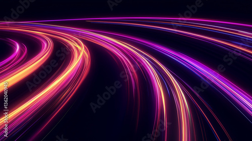 Futuristic Neon Light Streaks in Motion on a Dark Background