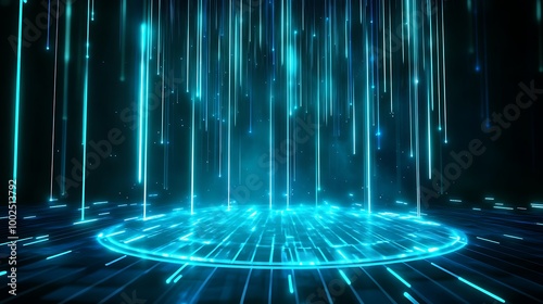 Futuristic neon lights create a digital atmosphere with glowing lines and patterns.