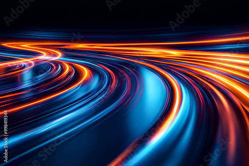 Futuristic Neon Road Speed with Light Laser Trails – Abstract LED Curves and Fast Moving Car Strips Design