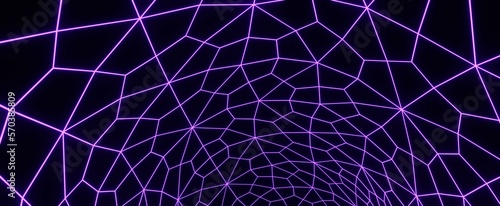 Futuristic neon spider mesh background. Purple digital plexus with 3d render futuristic tracery. Cyber space world wide web for techno design and halloween