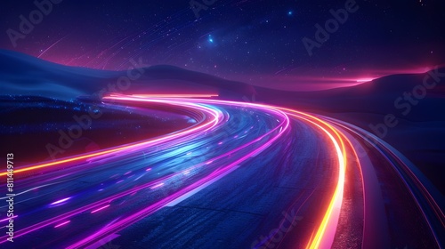 Futuristic Neon-Lit Abstract Road through Vibrant Cosmic Landscape
