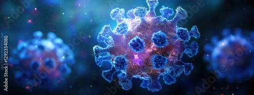 Futuristic Photorealistic Virus Cell Representation with Blue Lighting and Macro Lens Perspective