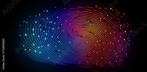futuristic realm with a neon-style fingerprint scanner icon glowing against a sleek black backdrop, symbolizing cutting-edge biometric data sensing technology.
