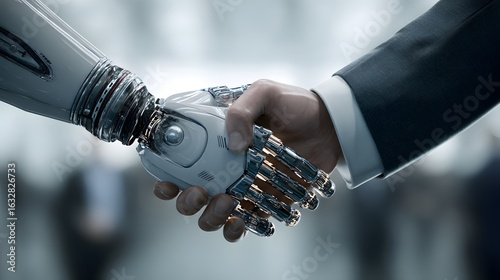 Futuristic Robot Handshake: Symbolic Gesture of Trust in AI Technology and Human Collaboration for Business Innovation and Advanced Cybernetics in the Modern Workplace