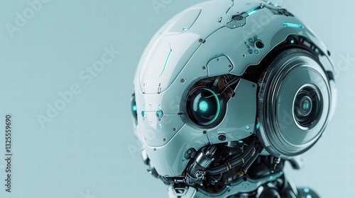 Futuristic Robot Head with Blue Lights and Metallic Features