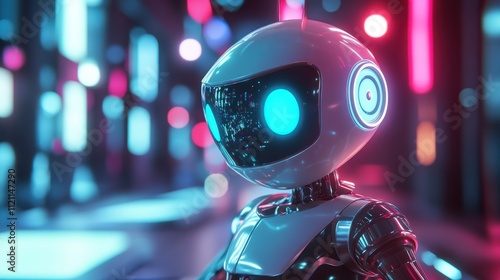 Futuristic Robot in Neon Cityscape Cyberpunk AI, Digital Art