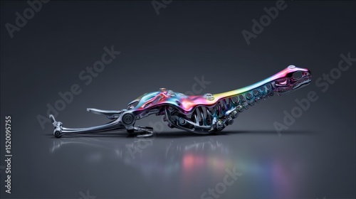 Futuristic robotic design featuring a colorful and sleek dinosaur-like creature.