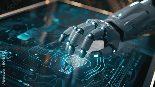 Futuristic Robotic Hands Control Science Data Technology Represent Future Powerful Technology Background