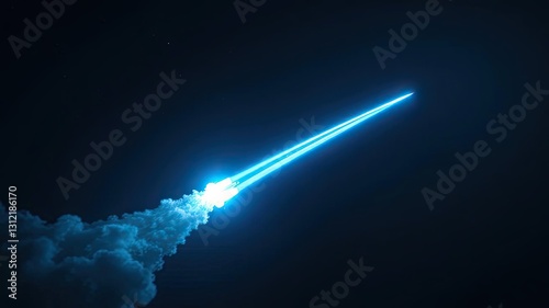 Futuristic Rocket Launch Blue Streak Space Travel Night Sky
