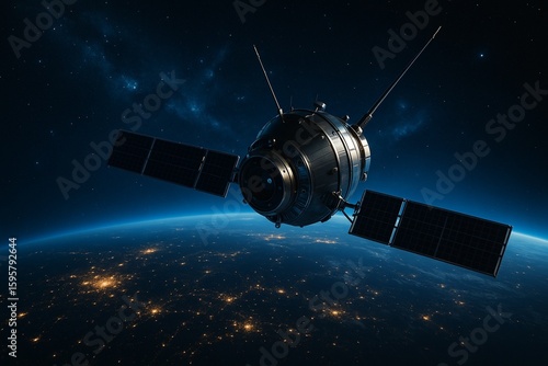 Futuristic Satellite Orbiting Earth at Night with Starry Space Background