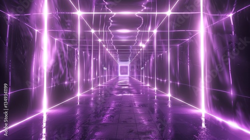Futuristic Sci Fi dark empty background with purple neon lights. 3D visualization. Stage spotlight. Neon red background. Futuristic concept
