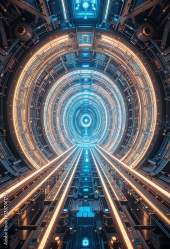Futuristic Sci Fi Tunnel Corridor with Glowing Lights Abstract Background Digital Art 3D Render