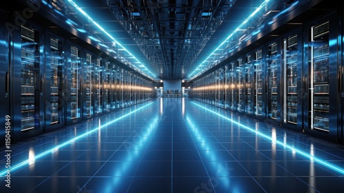 Futuristic Server Room: A Stunning Visual of Advanced Technology and Data Infrastructure