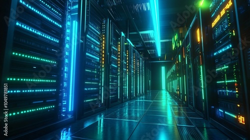 Futuristic Server Room with Neon Lights