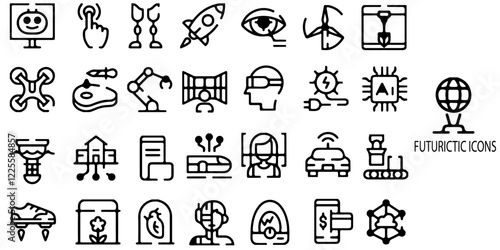 Futuristic simple concept 28 icons set. Contains such Templates for notes, posters, banners, stickers, business cards, logo .Vector illustration.