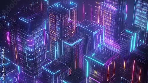 Futuristic smart city isometric 3d rendering with modern high rise buildings cloud computing and. Ironscape. Illustration