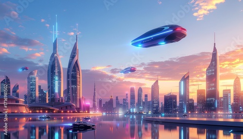 Futuristic Smart City Skyline – Modern Technology Urban Scene
