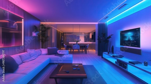 futuristic smart home interior holographic interfaces sleek design ambient lighting aiintegrated living space