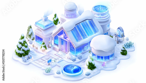 Futuristic Snowy Research Station Winter wonderland scientific complex, ideal for game assets or sci-fi illustrations