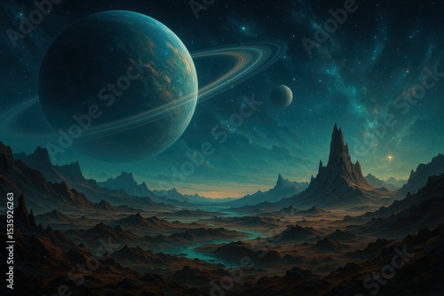 Futuristic Space Planet Landscape with HD Cosmic Desktop Wallpaper and Alien Environment