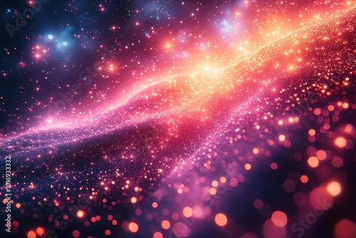 futuristic space scene with vibrant neon light rays creating a dynamic energy effect perfect for a music or metaverse design filled with starlike glowing elements