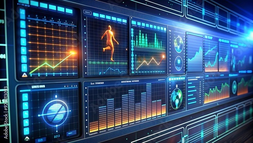 Futuristic Sports Analytics Dashboard, Player Performance Metrics, High-Tech Sports Visualization