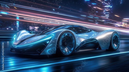 Futuristic Sportscar Racing on Neon-Lit Highway at Night