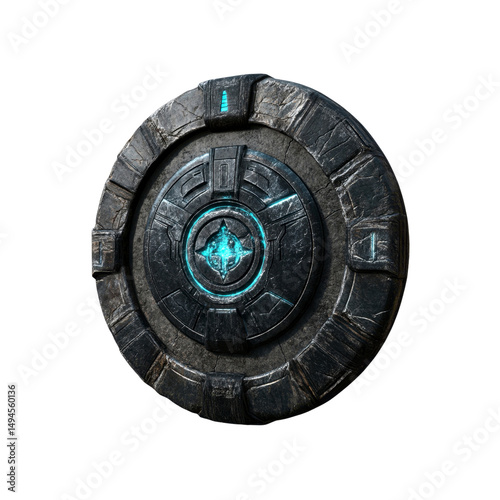 Futuristic Stone Disc with Glowing Blue Core - Sci-Fi Technology Interface