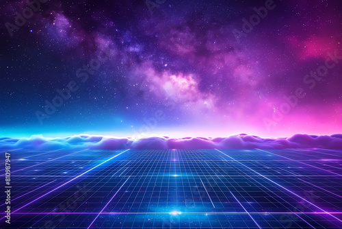 futuristic synthwave laser grid landscape background.