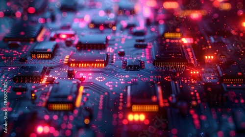 Futuristic tech background: circuit board patterns, digital elements, and modern color palette.