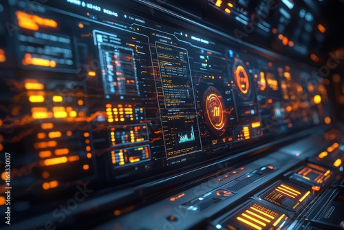 Futuristic Tech Control Panel: Orange and Blue Digital Interface