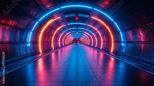 Futuristic Techno style Tunnel with Glowing Neon Lines and Digital Illumination
