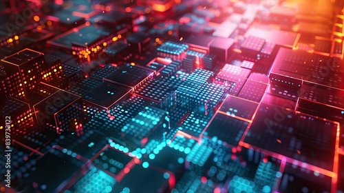 Futuristic technology abstract lines and grid in virtual space from The concept of digital technology and the Internet. AI generated illustration