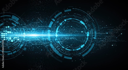Futuristic technology background displaying abstract data streams and network connections with blue light shining.
