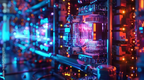 Futuristic Technology Background with Neon Lights and Circuitry in a High-Tech Environment