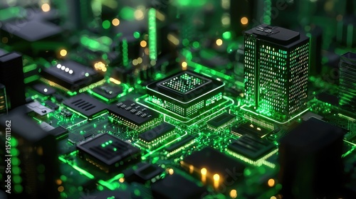 Futuristic Technology Circuit Board with Neon Green Lights