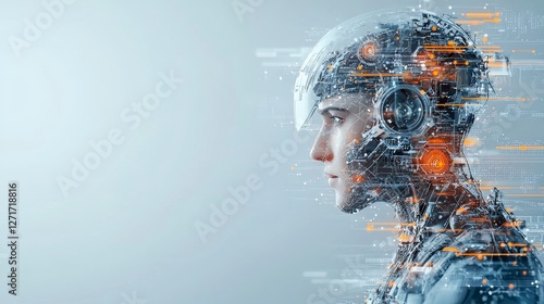 Futuristic technology concept cybernetic human interaction digital realm 3d visualization high-tech environment side profile view innovation and ai integration