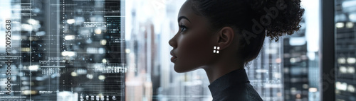 Futuristic technology focus urban skyline portrait photography cityscape profile view innovation and progress