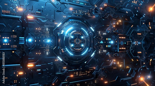 Futuristic technology pattern design withneon blue and silver pallet minimalistic