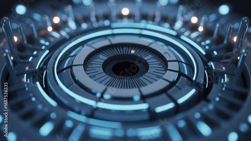 Futuristic technology with a glowing blue light and a complex design element